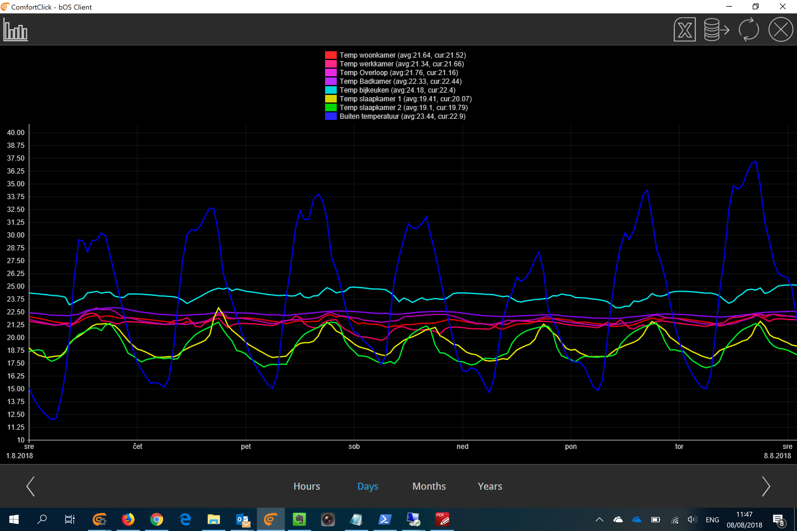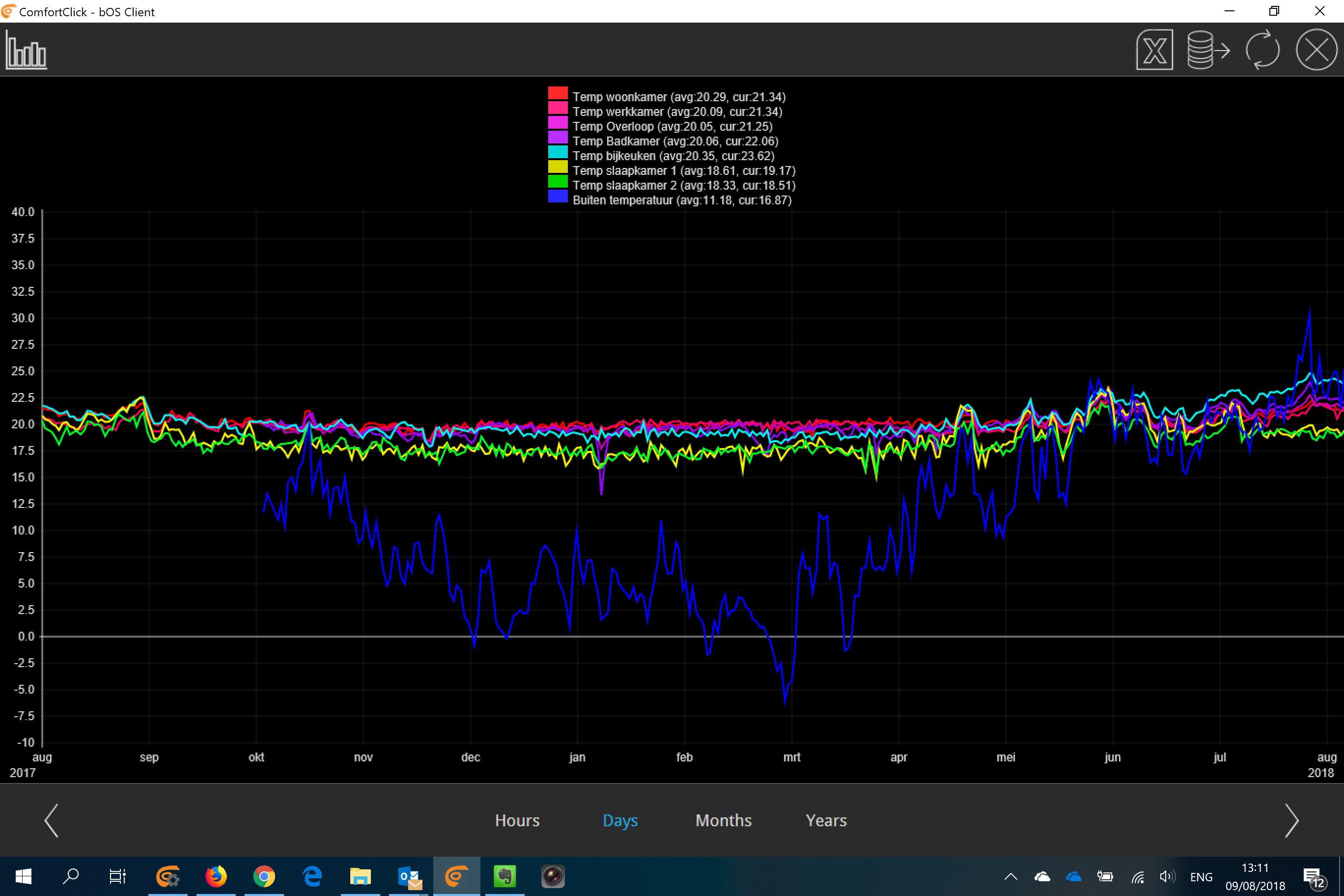 Here is a screenshot of a temperature graph from the Datalogger. The translation is incorrect with Days. Months are displayed correct. The default language used is English.