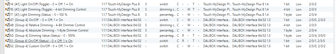 I have some some dimming lights (controlled buy dali gateway), they are programmed in ETS and working fine.