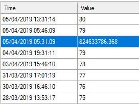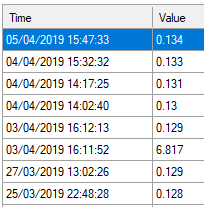 The thing is that I've been watching the raw logs from Anybus and these spikes don't come from Anybus... And when i look at the database files I see that right after the bOS server comes up it writes a unknown value and 15minutes(thats the update time of Anybus) later it will update it to the correct one. How to get rid of them spikes and where to they come from? And as you see from the picture the spikes are random not every meter is affected by it. I now have corrected the value spikes manually.