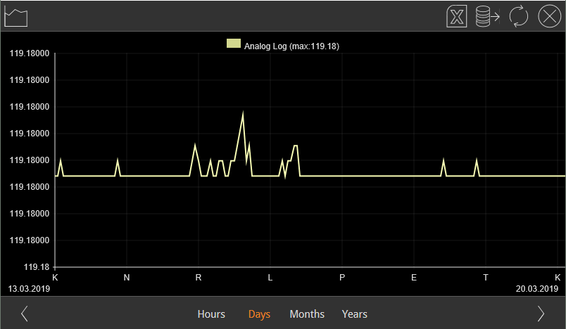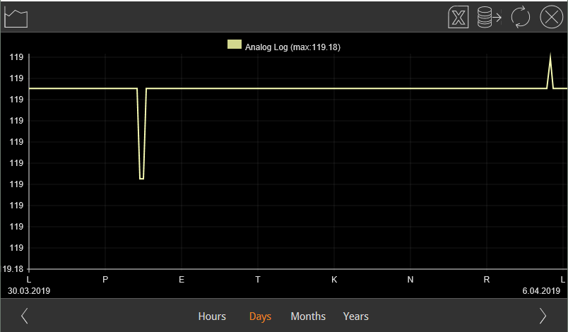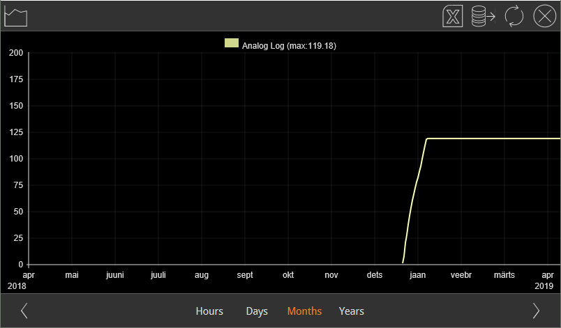 I'm having a weird problem again, Our client demanded graphics for every meter (C/H water, electricity and for the whole building ventilation system) and i noticed that when we did a backup of the bOS configuration or the server did a restart, we got weird spikes in graphics that sometimes where lower values and some were higher values. The water and electricity info is collected and readout by Anybus mbus to modbus and the ventilation values are collected with usb modbus dongle. Pic below has a week view but actually the value rises again after the server get the correct value again from Anybus.