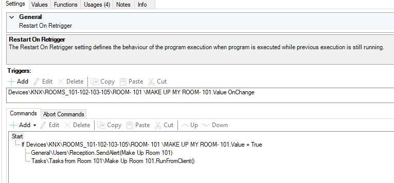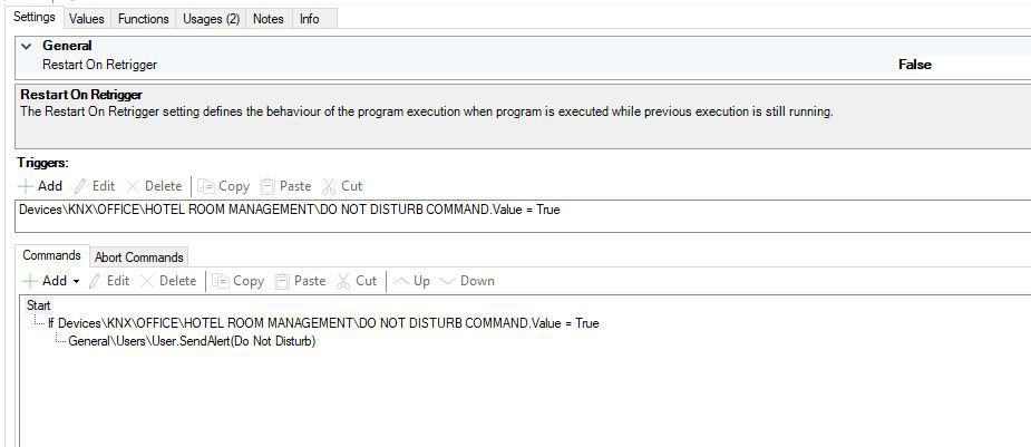I am having a question regarding Pop Up Alarm messages for Hotel rooms. We have a KNX project for a hotel and we have install a Sledgehammer Server. We have create the Users such as Reception and Room's Users . Inside each Room we have 3 different push buttons for 3 different alarm functions which are: Do not Disturb , Make Up My Room and Room Service. What we need to do is anytime the customer of each room when pressing one of these buttons the Reception will receive a pop Up Alarm message on the screen . I have tried to make this configuration but I didn't get any pop-up messages when pressing on of these three buttons. Any ideas how we can make this work?