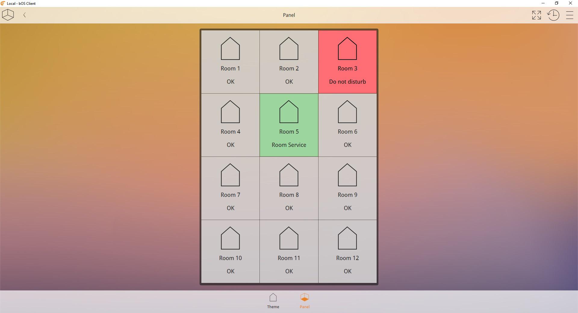 currently we don't have a pop up option in bOS. You can however, make a ShowPanel function on a certain trigger. E.g. when room changes status from OK to Room service, client will automatically open room panel where room which requires room service is displayed (picture in the attachment)