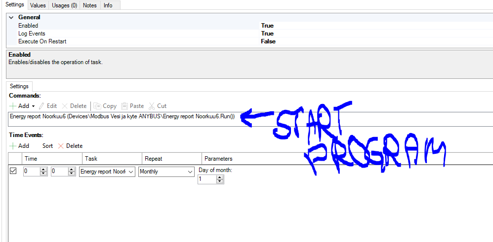 Example: Ive made a scheduler that will start the program what then will send out the meters values.