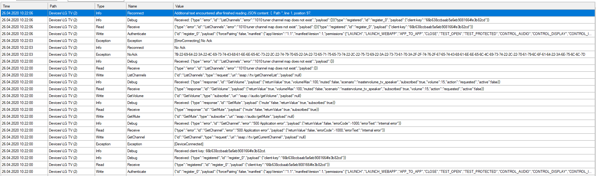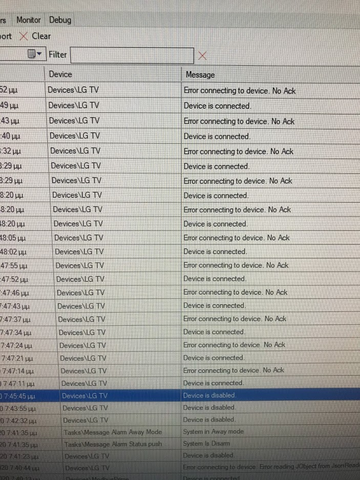 when i try to connect my lg tv i get the following out message in my visu.