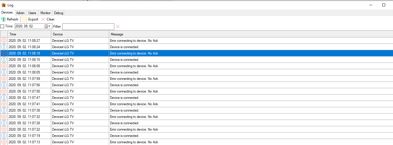 when i try to connect my lg tv i get the following out message in my visu.