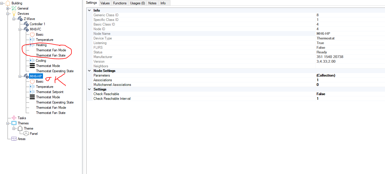 a new stable release was released, where we added the fan control, heating and cooling control, so try and install the latest update and see if you're finally able to control all the nodes of the device.