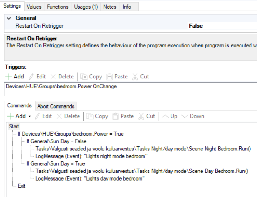 I'm trying to sync my Hue motion detectors and my KNX detectors. In order to do so, I need to turn on the lights differently depending on the hour.