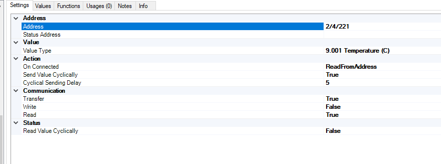 Also check the value on ETS, make a read on the address, and confirm that it's ok. As the max value is exactly the same as any temperature, if the value is correct on ETS, and correctly configured as DPT 9.001 on bOS, it should work without any issues.