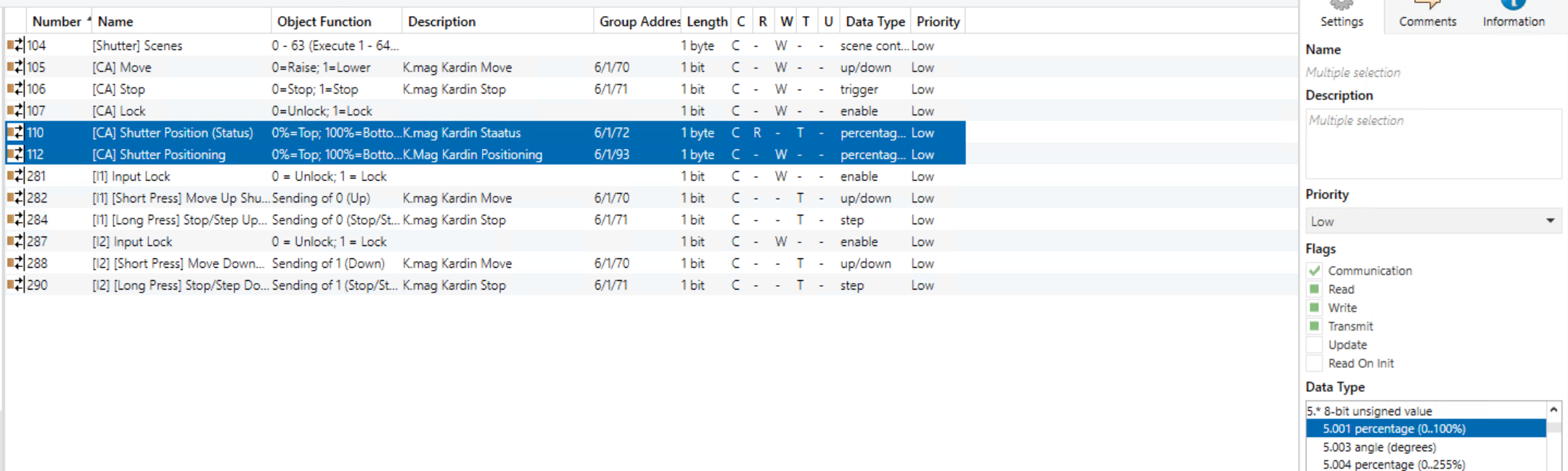 I have my blinds now all integrated in KNX and placed on the glass buttons in the respective rooms - now I want to bring the also in ComfortClick and fail.