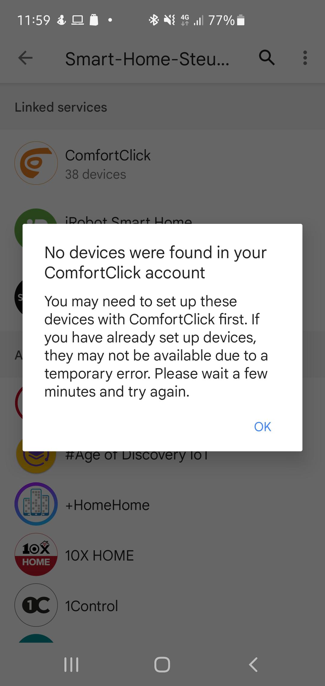 Since almost 6 months I have the problem, that I frquently loose the connection to Google home. If I ask Google to carry out an activity that is linked to Comfortclick, I get the answer "Comfortclick ist not accessible". I can solve the issue by reconnecting my account to Comfortclick over the Google Home App. This is generally a solution, but mostly I need to reconnect it daily as the connection is lost that often.