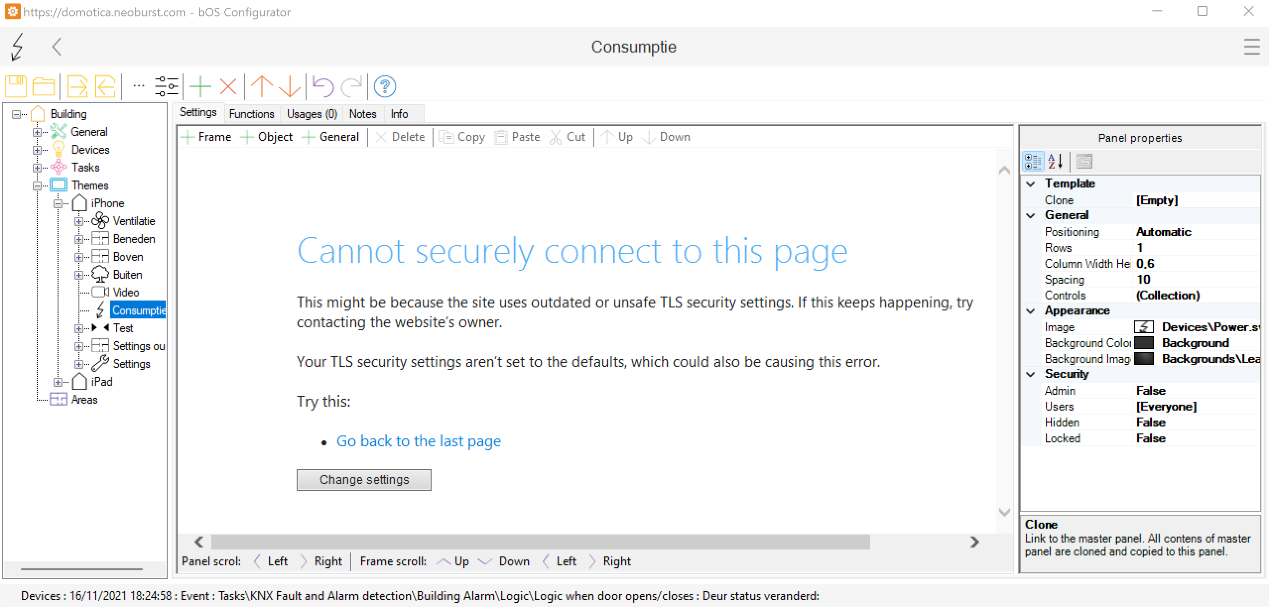 The client installs and starts OK, but when I add the connection info and click connect, it just displays an "Can't connect securly to this page"