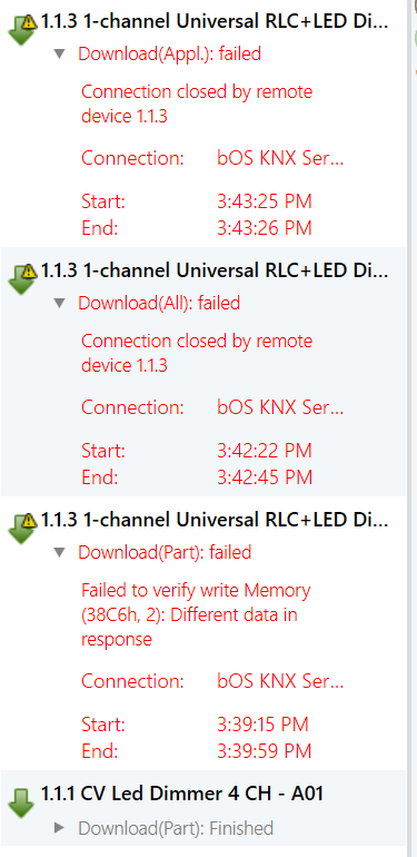 I having big trouble to programming KNX over Jigsaw with ETS 6 when I test for bus it return error but I can see data on bus with diagnostic but wehn I try to program something I got error Connection closed by remote device. Have anybody similar behaviour?