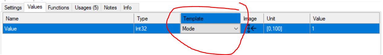 You need to set the correct template for the 1byte register/address. Then the client/you can change its values inside scenes too.