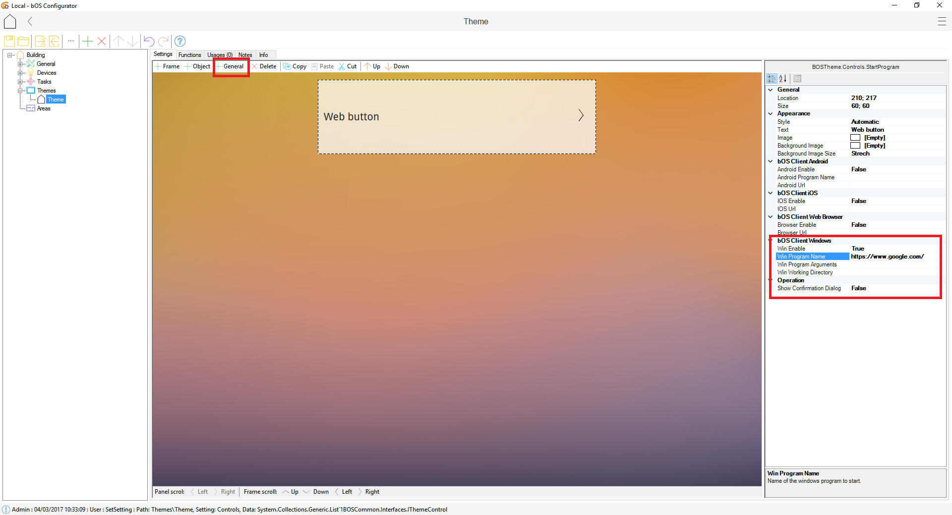 yes it is possible. Simply add a General button and then add your URL under Win Program Name and enable Win enable. Picture below.